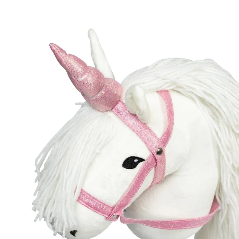 Duik in een wereld van magie en fantasie met ons nieuwe product: Eenhoornhoorns en halster in roze glitter – de ultieme toevoeging aan het populaire hobbypaarduniversum!