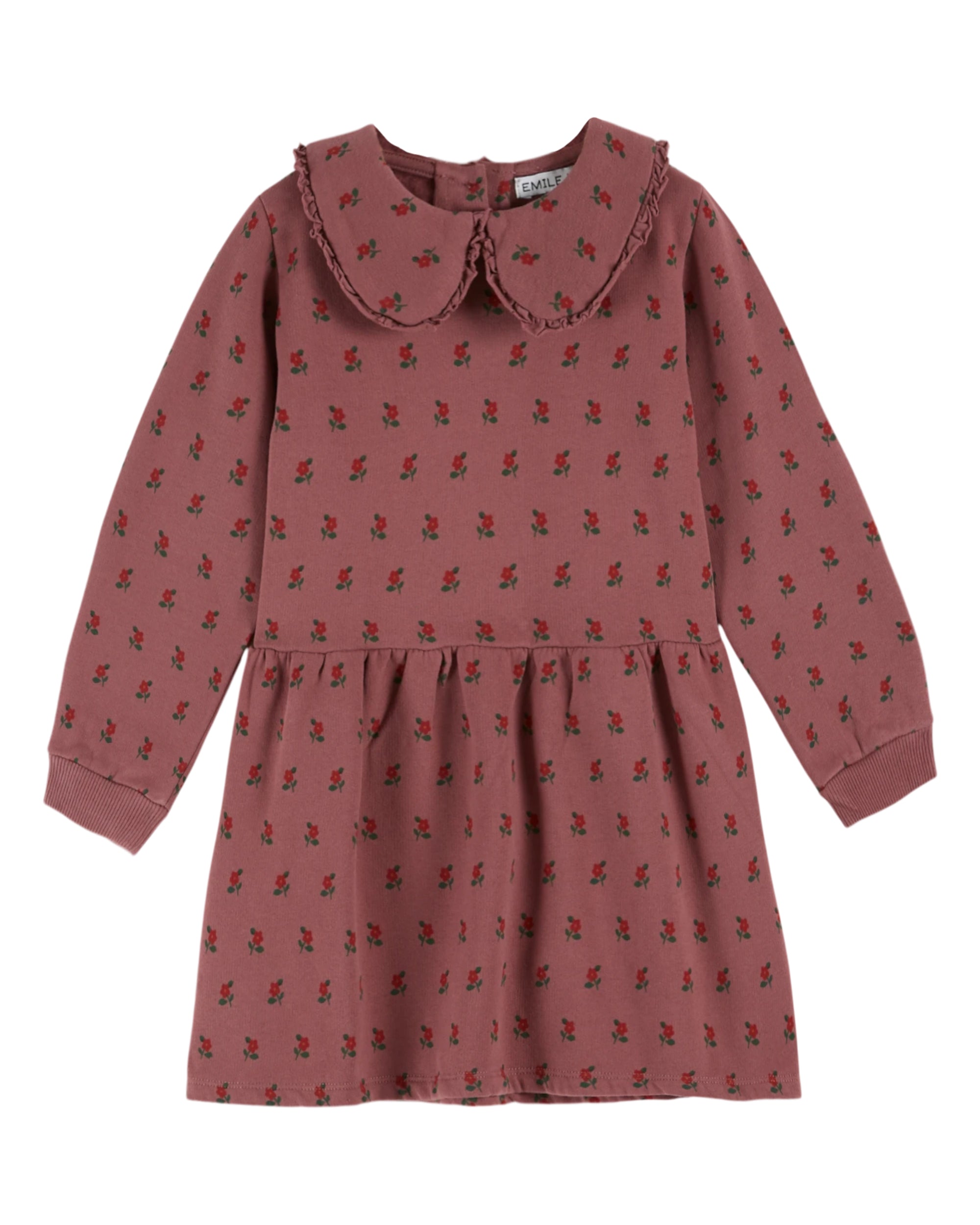 Een vrolijke roze jurk van Emile et Ida met bloemetjes.