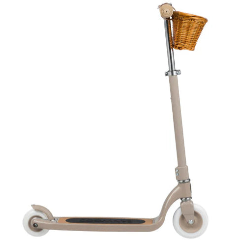 De Maxi Scooter wordt geleverd met onze iconische rieten mand, ideaal voor fantasierijk speelplezier en om de belangrijkste spullen mee te nemen!