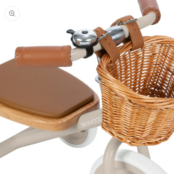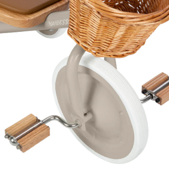 Deze driewieler voor kinderen is geschikt vanaf 2 jaar en is gebouwd om generaties lang mee te gaan. Hij is voorzien van een zacht gevoerde eikenhouten zitting, eikenhouten pedalen en details van veganistisch leer. Aan de voorkant zit een leuk rieten mandje om de belangrijkste spullen voor het park in mee te nemen.