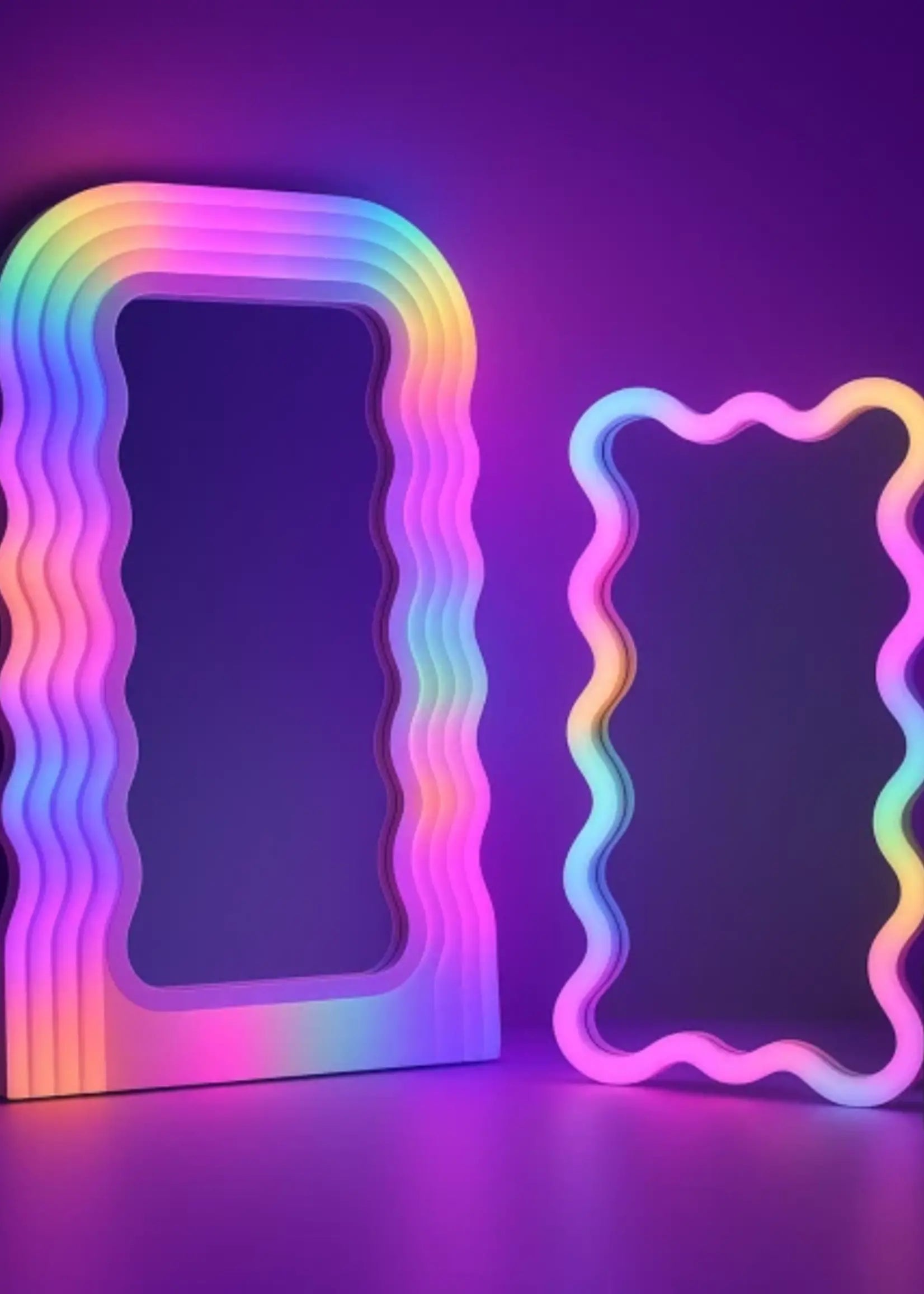De Lalarma Magic Glow spiegel tovert je kamer om met 16 kleuren, leuke lichteffecten en LEDs die op muziek reageren. Jij bedient alles met de afstandsbediening of de LotusLamp X app.