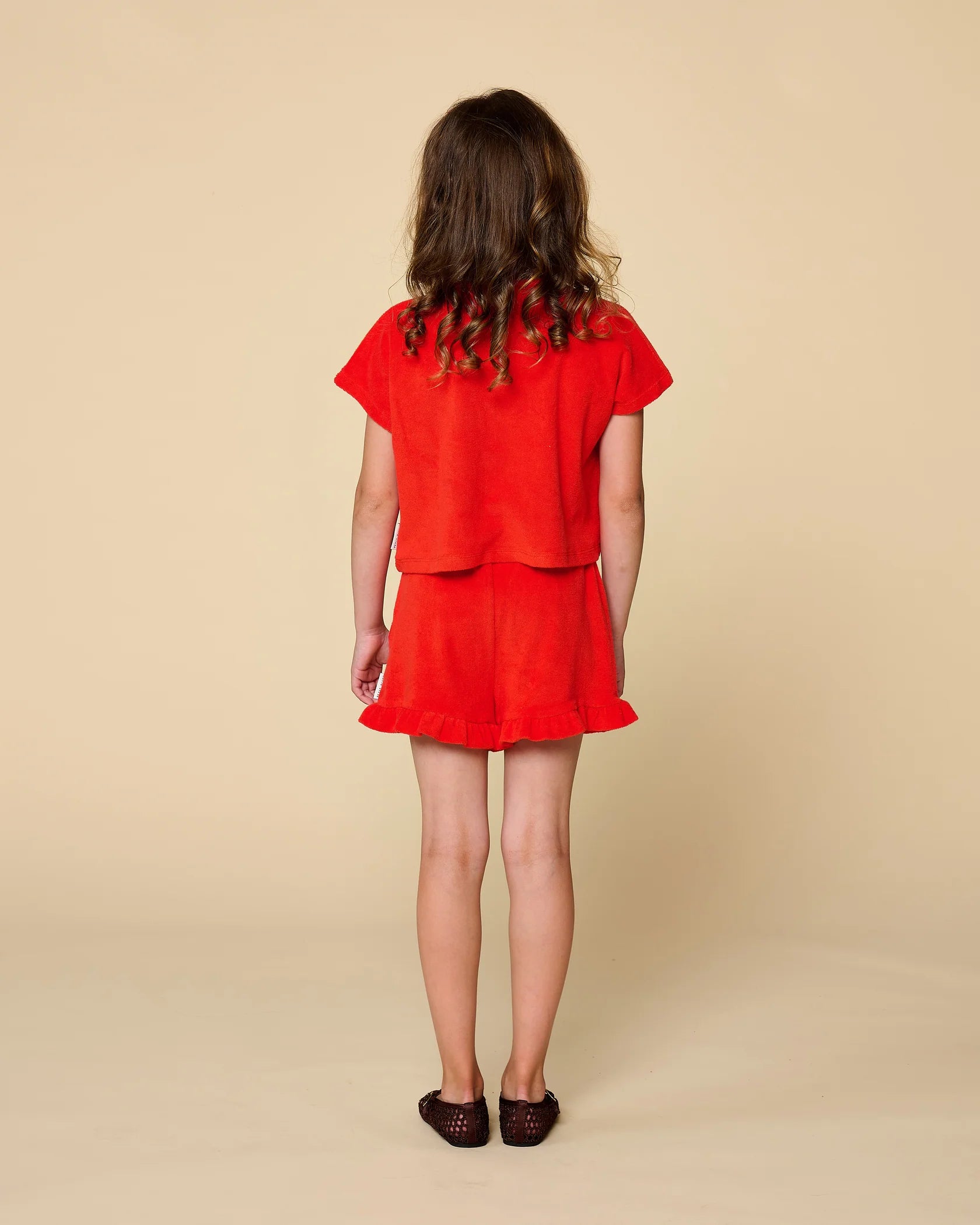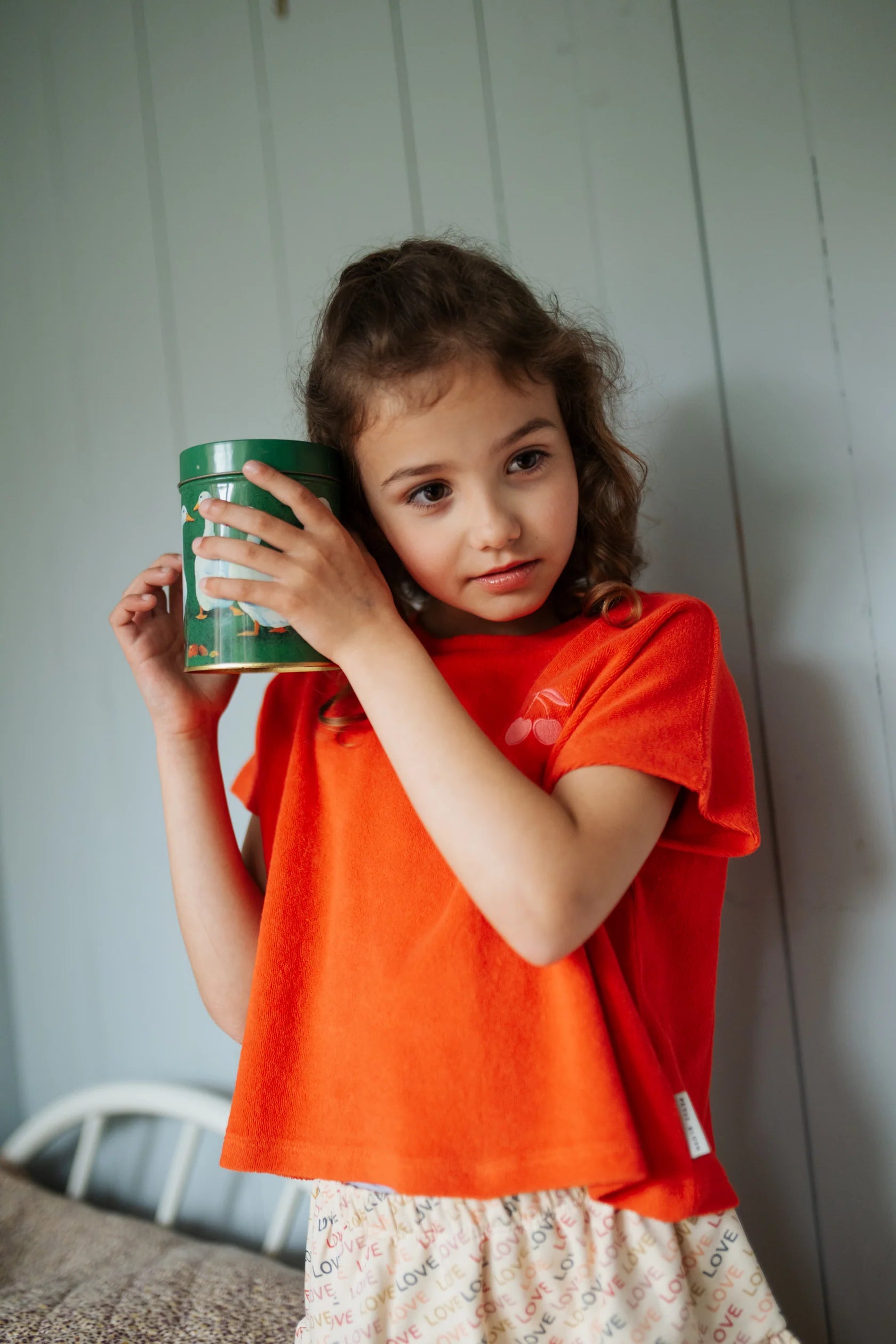 Dit rode T-shirt is hét recept voor instant vrolijkheid!  De speelse kersjee op de zijkant is subtiel getoond, maar zorgt voor een opvallende en eigenwijze twist.