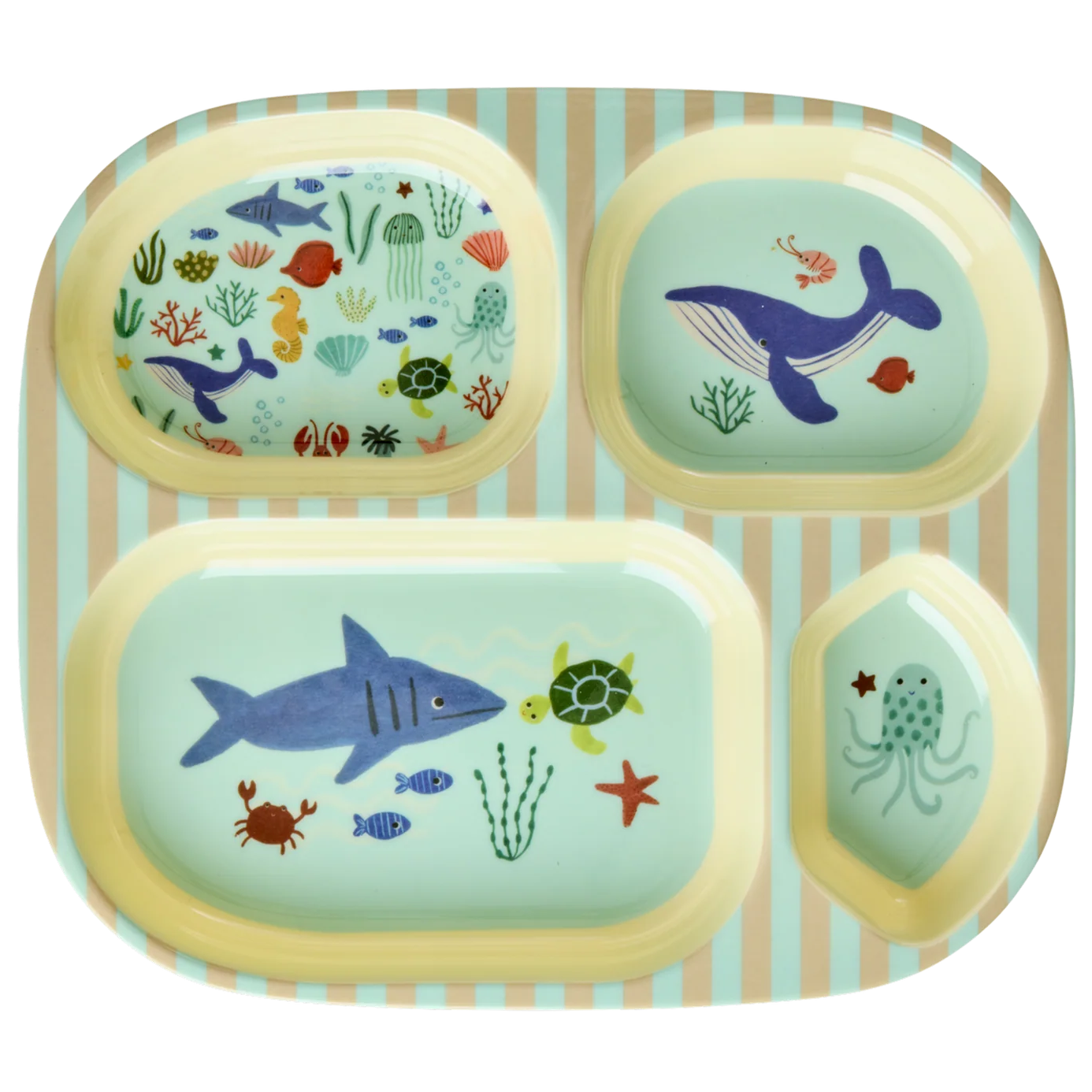 Rice melamine kinderbord met 4 vakjes blue ocean
