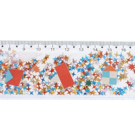 Laat je meevoeren door de lucht met deze speelse liniaal van Le Petit Souk. De liniaal is 20 cm lang en gevuld met een vloeistof waarin kleurrijke vliegers en fijne glitters vrolijk rondzweven zodra je hem beweegt. Een dromerig en speels ontwerp dat meteen een glimlach op je gezicht tovert en studeren leuker maakt.