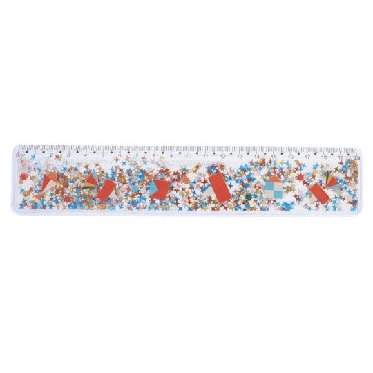 Een vloeibare glitterliniaal met vliegers in de lucht, waarmee huiswerk maken een feestje wordt!