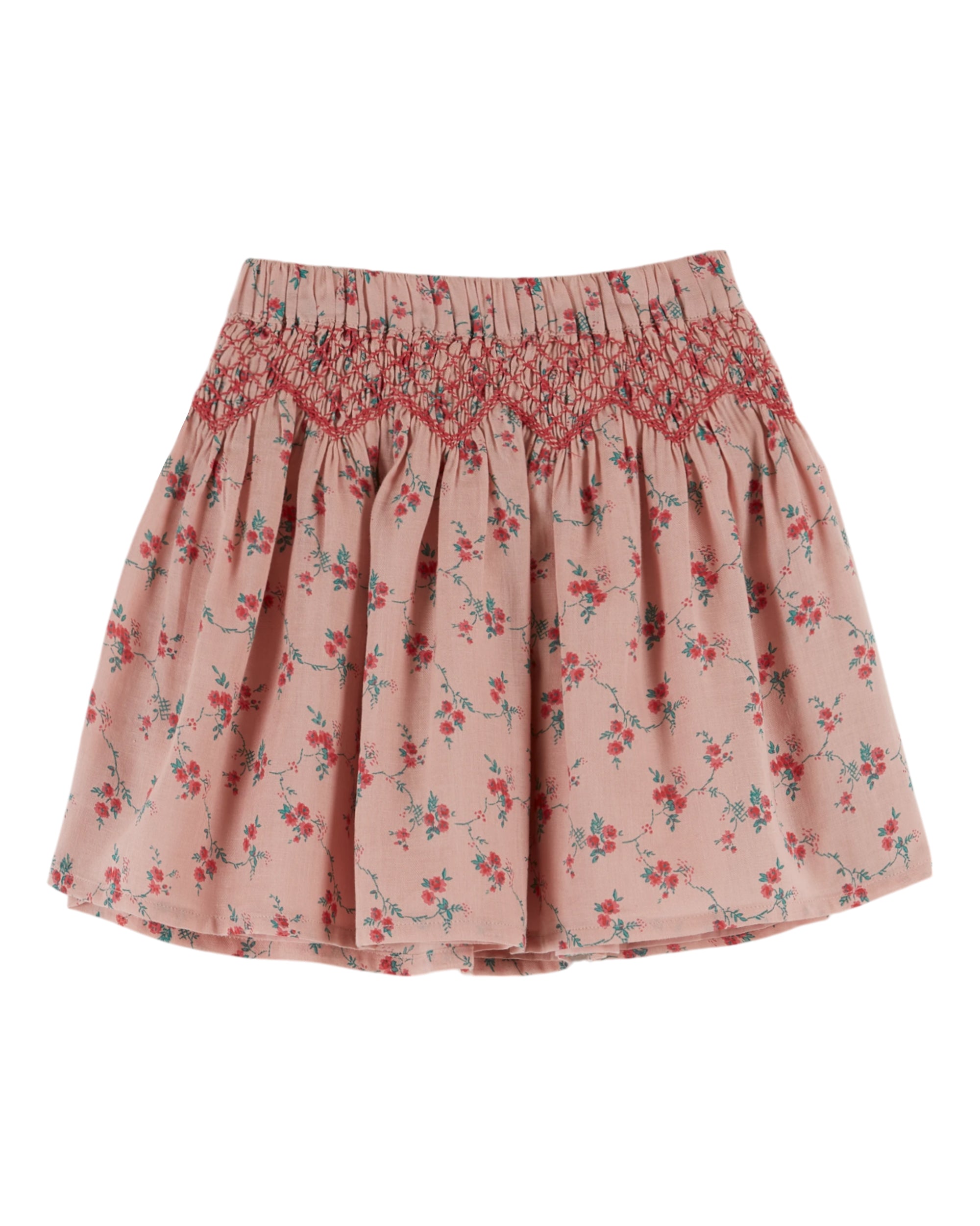 Een vrolijke roze rok van Emile et Ida met bloemetjes.