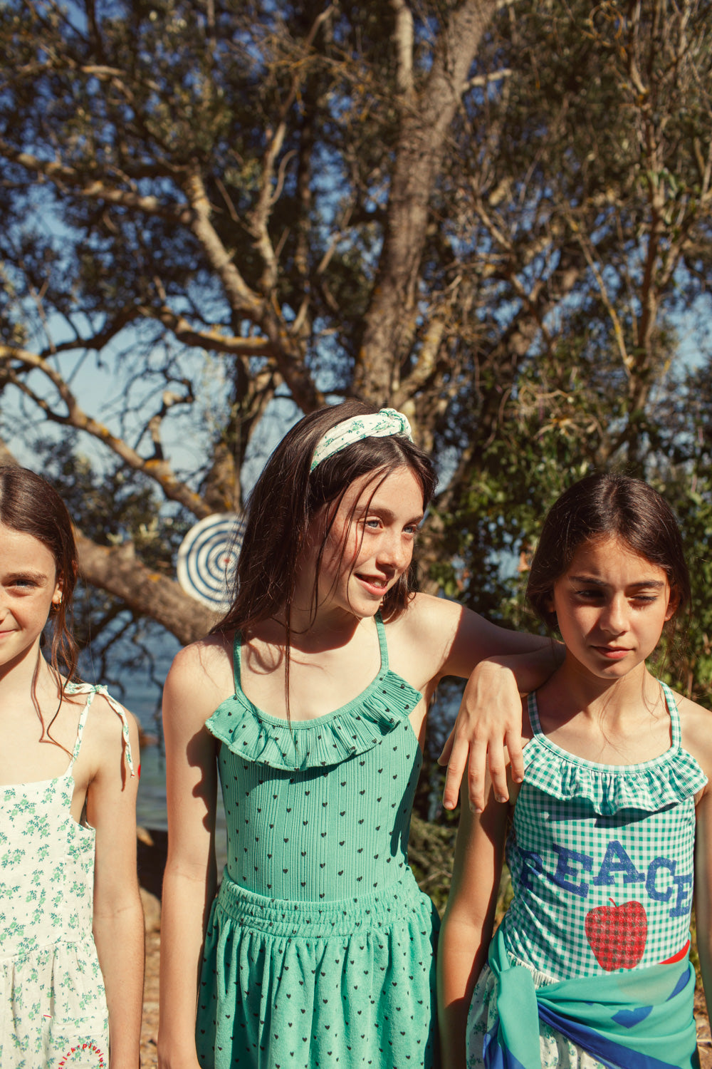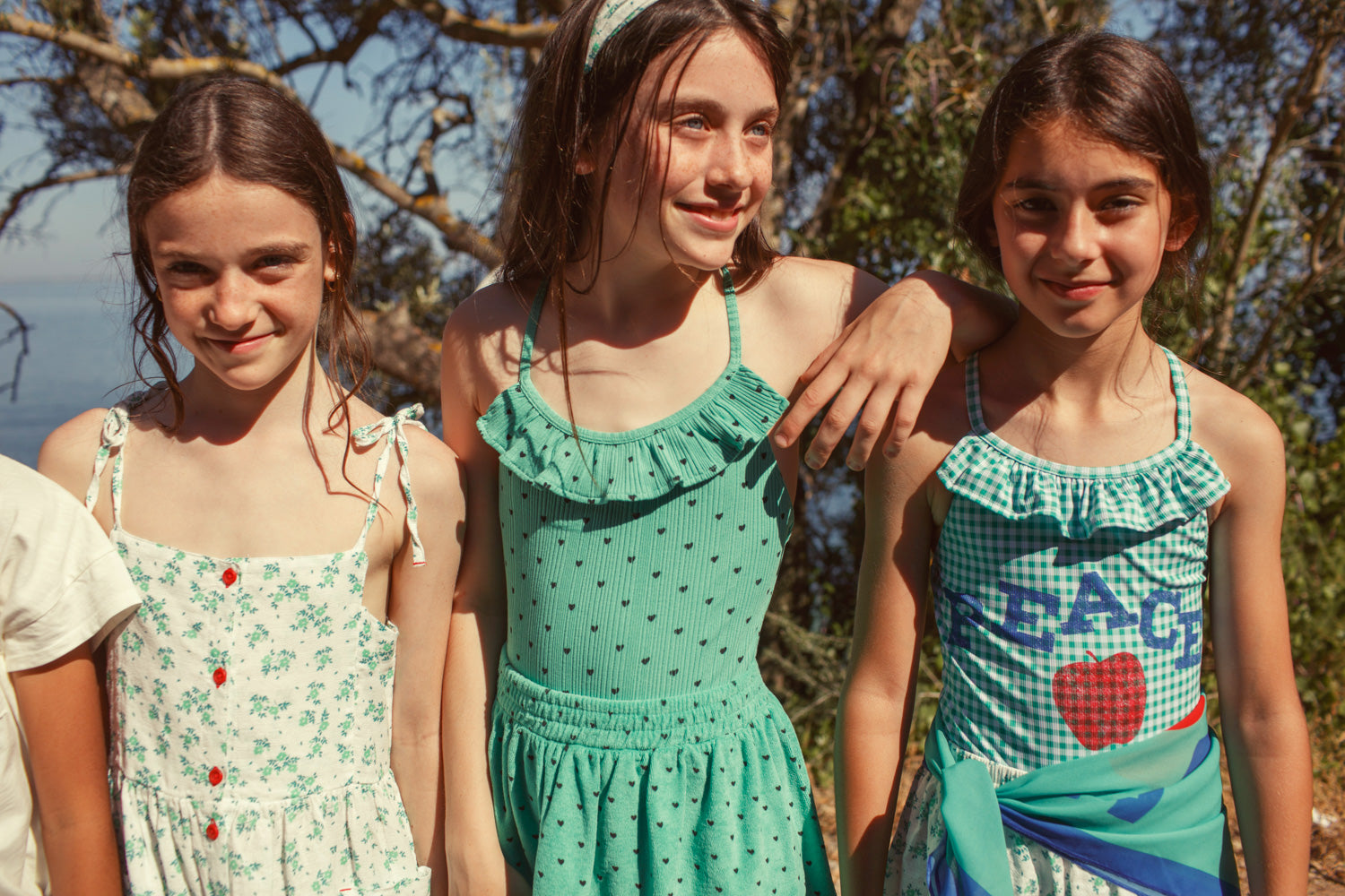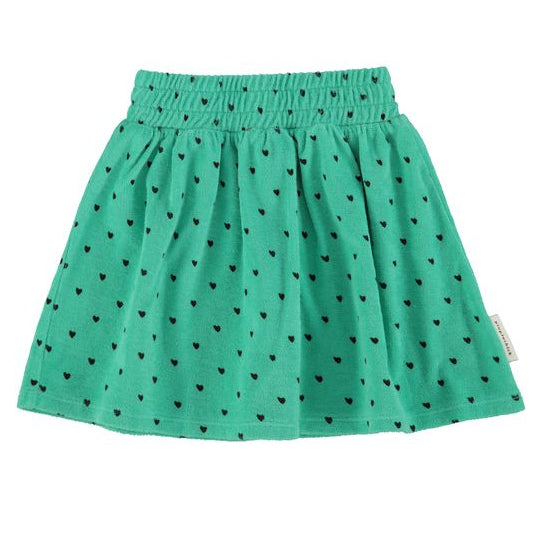 Korte rok van biologische badstofkatoen met een elastische tailleband. Afgewerkt met zwarte hartjes.