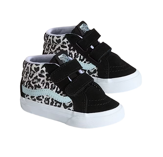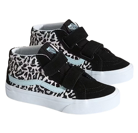 Geef je kleintje een opvallende stijlboost met deze Vans Sk8-Mid Reissue V sneakers. Deze mid-top kinderschoenen combineren het iconische Sk8-Mid silhouet met een speelse dierenprint in zwart-wit en het herkenbare witte Vans-zijstreepje. De dubbele klittenbandsluiting zorgt voor een makkelijke en stevige pasvorm, ideaal voor kinderen die graag zelf hun schoenen aantrekken. Het bovenwerk is gemaakt van een combinatie van duurzaam suède en canvas, terwijl de gevoerde kraag extra ondersteuning en comfort biedt. De klassieke wafelzool van rubber zorgt voor grip tijdens al hun avonturen.