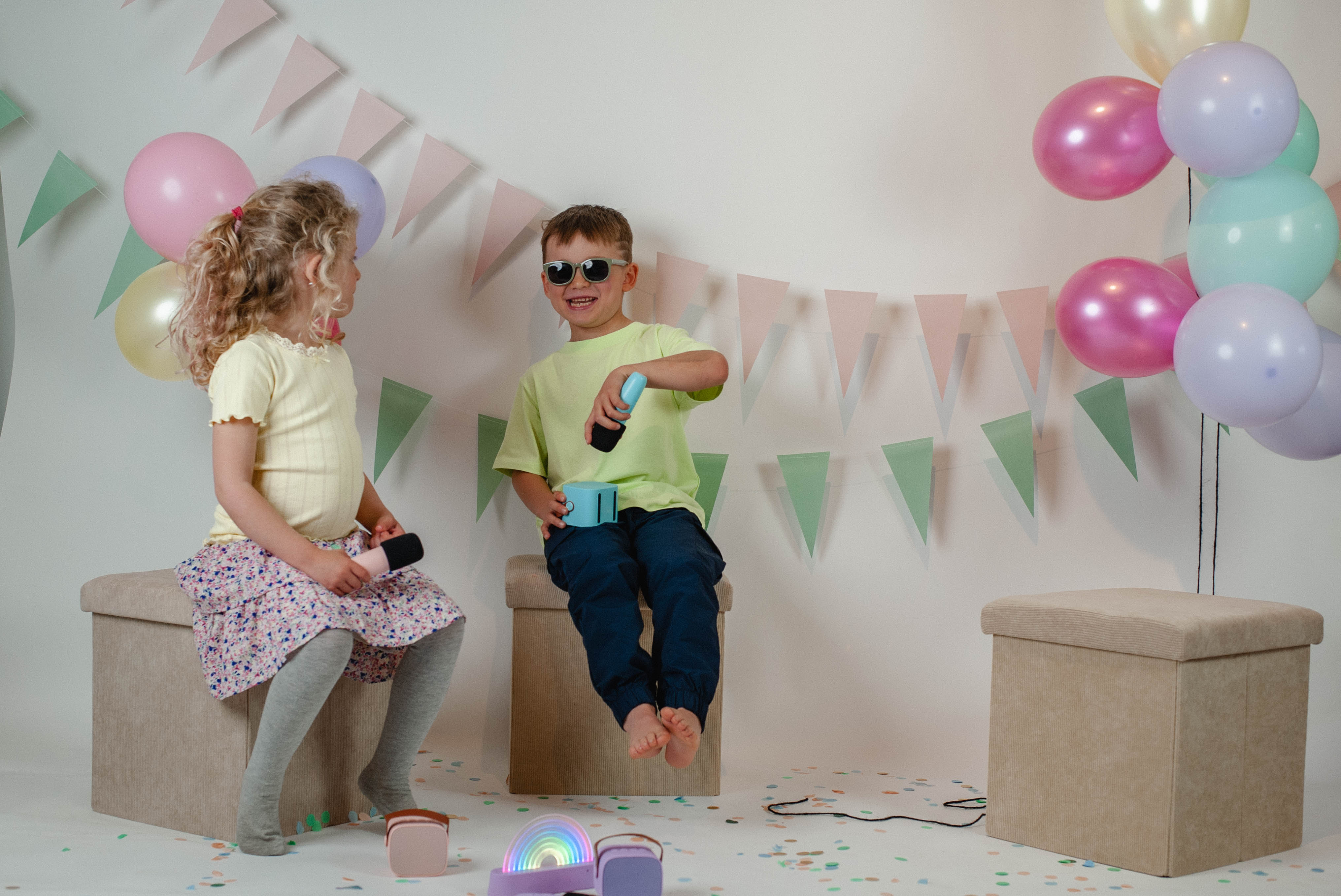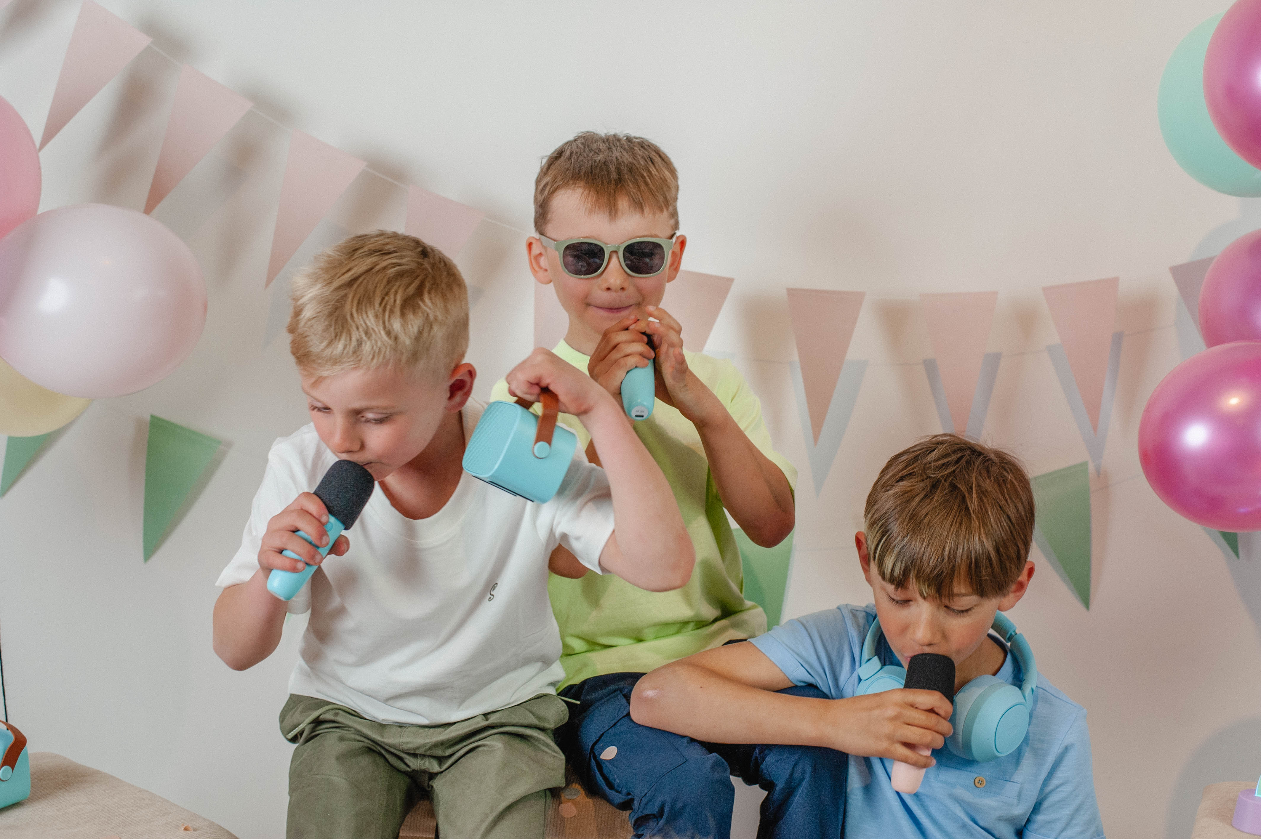 Je kunt de speaker gebruiken om muziek mee af te spelen. Met de microfoons creëer je een karaoke feestje! De microfoons kun je ook gebruiken voor geluidseffecten zoals een stemvervormer.