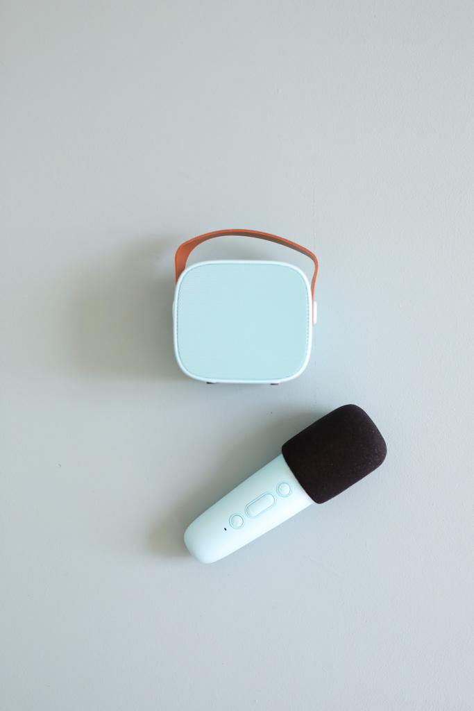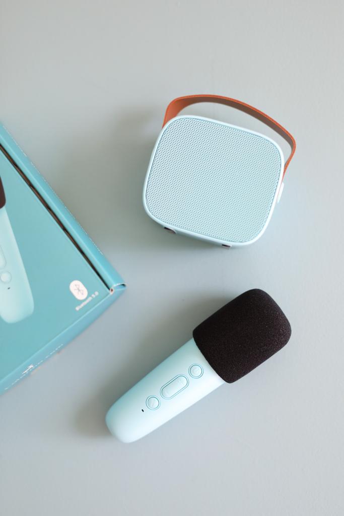 De set heeft een draadloze speaker en een draadloze microfoon. Je verbind de set makkelijk met bluetooth. Er is ook ruimte om een SD-kaart te plaatsen.