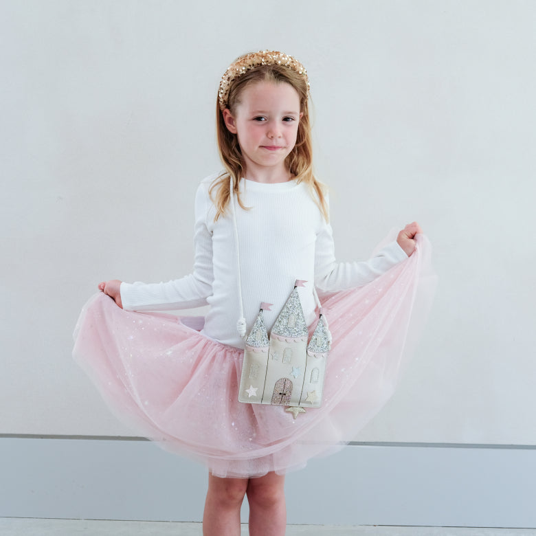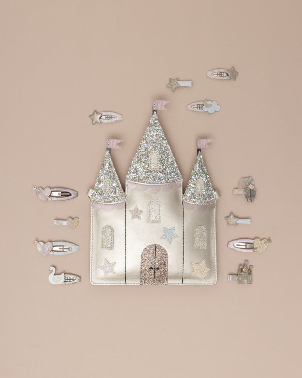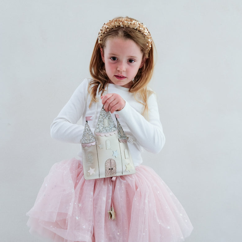 Fans van sprookjes zullen dol zijn op deze betoverende kasteeltas! Met sprankelende torentjes met schattige geschulpte randen en kleine vlaggetjes, is deze prachtige tas het perfecte cadeau voor kleine dromers!