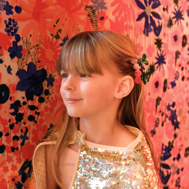De Rockahula Sweet Cherries haarclips voegen een speels en kleurrijk accent toe aan elk kapsel. De zachte glans en het schattige kersontwerp maken ze perfect voor zowel dagelijks gebruik als feestelijke gelegenheden. Dankzij de stevige clip blijven ze goed op hun plek, zelfs tijdens het spelen.