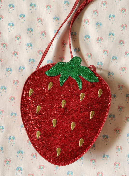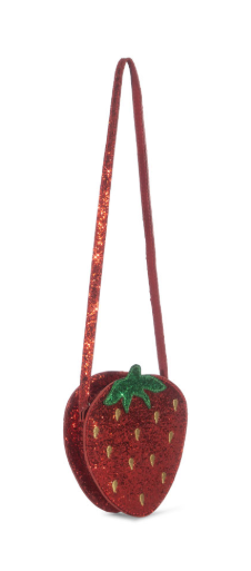 Schattige schoudertas in de vorm van een heerlijke kleine aardbei die overal schittert en schittert. Ontworpen met een dunne schouderband en een handige rits. Geschikt vanaf 3 jaar.