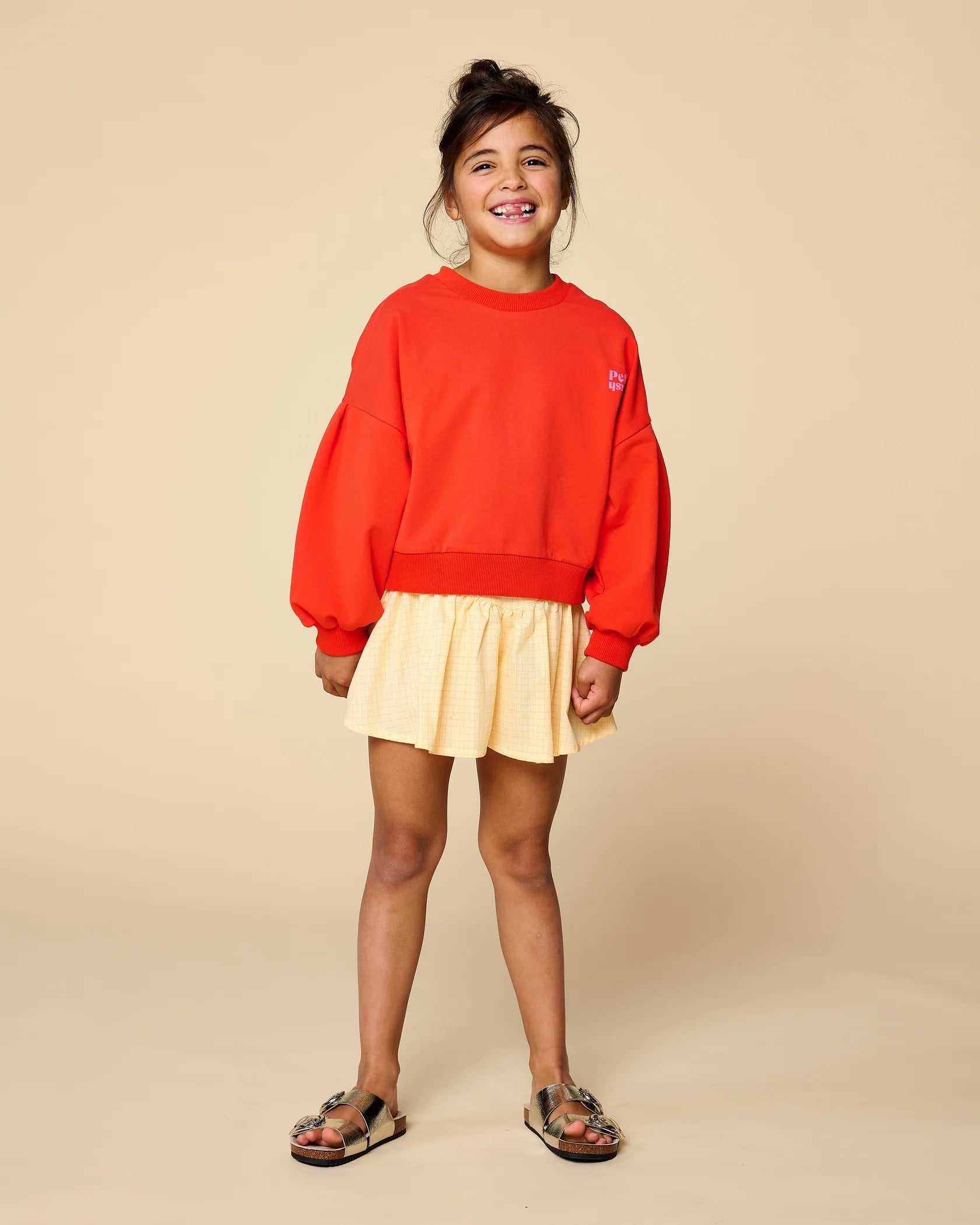 Deze knalrode sweater is allesbehalve basic! Met zijn relaxte fit, zachte stof en opvallende ‘Petit Blush’ opdruk aan de voorkant is het een echte blikvanger. Maar draai je om... en daar verschijnt de verrassing: een speelse roze kers op de rug voor een extra zoete touch. 🍒