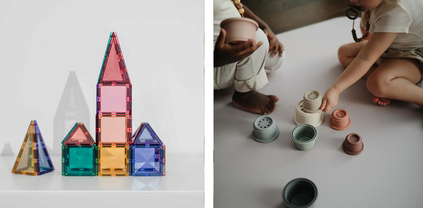 Bij deze categorie draait het allemaal om bouwen, vormgeven of iets maken. Denk hierbij aan de Connetix magnetische tegels als voorbeeld. Houten blokken of een speeltent zouden ook goed passen.