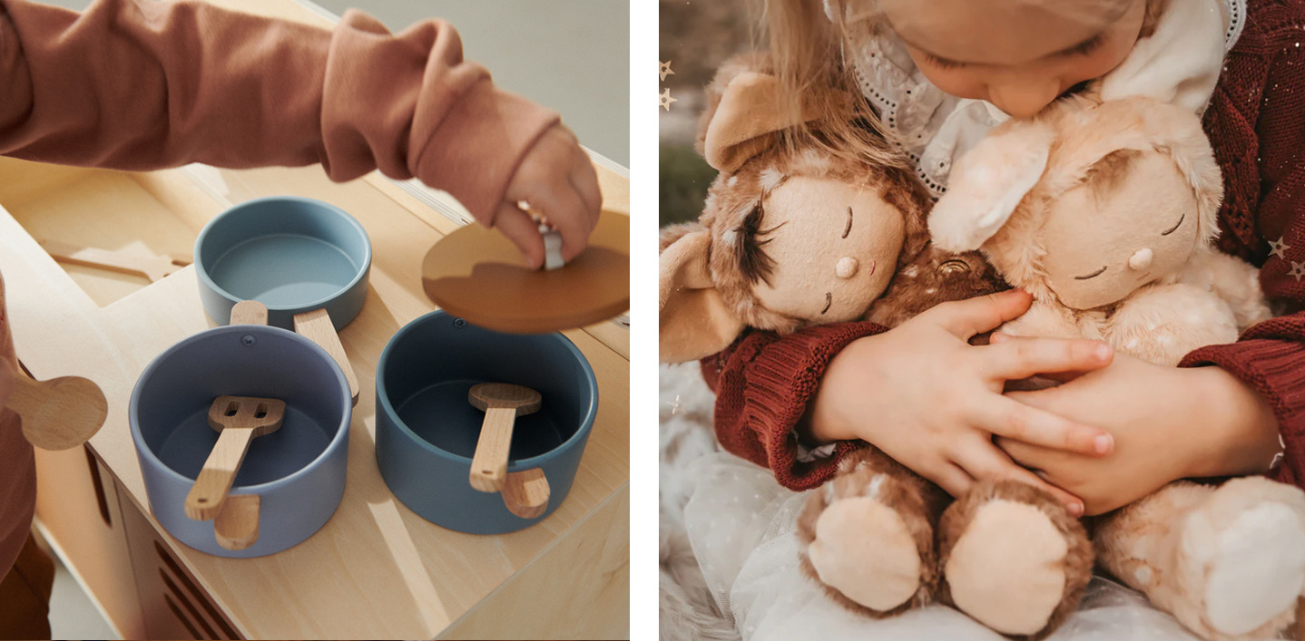 Met deze cadeautjes kan je kindje samen binnen- of buitenspelen met vriendjes, vriendinnetjes, broertjes, zusjes of familie. Maar ook om fantasiespel door in een andere rol of een andere wereld te stappen. Het spelen met knuffels, poppen of een poppenhuis is ook een goed voorbeeld, hierbij verplaatst je kindje zich in een ander.