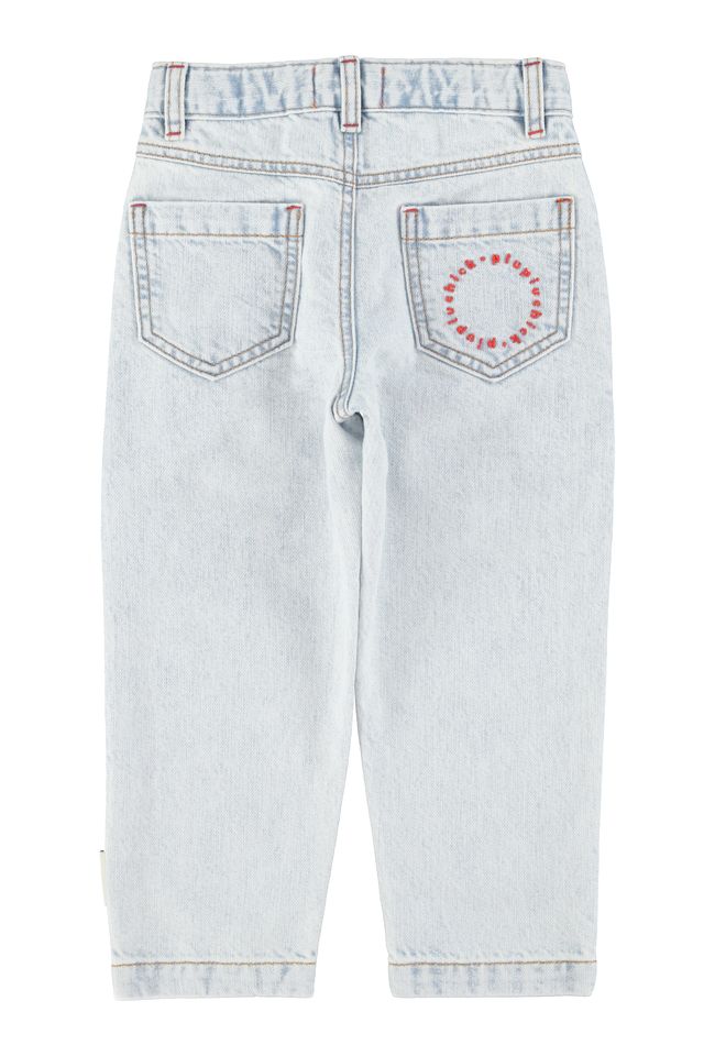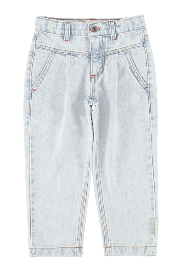 Mom fit broek met verstelbare taille, schouderblad en pincet aan de voorkant. Afgewerkt met rood logoborduursel op de achterzak.