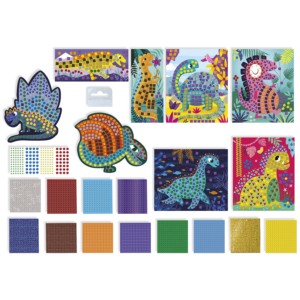 8 kaarten te versieren met meer dan 1400 mozaïek van schuimrubber en strass. 1 boekje met handleiding en voorbeelden.