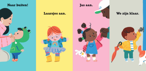 'Peuterpraatjes - Daar gaan we!' is een kartonboekje speciaal ontworpen voor peuters om ze te helpen bij het leren van hun eerste zinnetjes. De kindjes in het boek maken een uitstapje naar het park. De eenvoudige en herkenbare zinnetjes over routines voor kleine kinderen - zoals 'Naar buiten!', 'Met de bus.', en 'Laarsjes aan.' - maken taalontwikkeling leuk en laagdrempelig. Door de herhaling van uitspraken, zoals 'We zijn er bijna.', 'Goed vasthouden.', 'Hapje eten.' en 'Handjes schoon?' kunnen kleintjes actief meedoen en nieuwe woorden leren gebruiken in korte zinnen.
