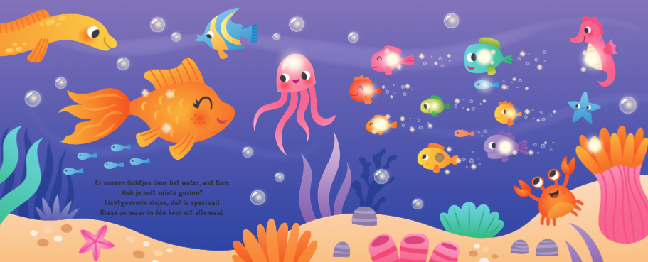 Ga je mee op pad met de vrolijke vis Mila? Na een lange dag vol avonturen is Mila erg moe. Blaas jij de lampjes uit, zodat jullie lekker kunnen gaan slapen? Dit betoverende boekje bevat lampjes die je met een druk op de knop laat twinkelen en uit kunt blazen als het bedtijd is. Slaap lekker!