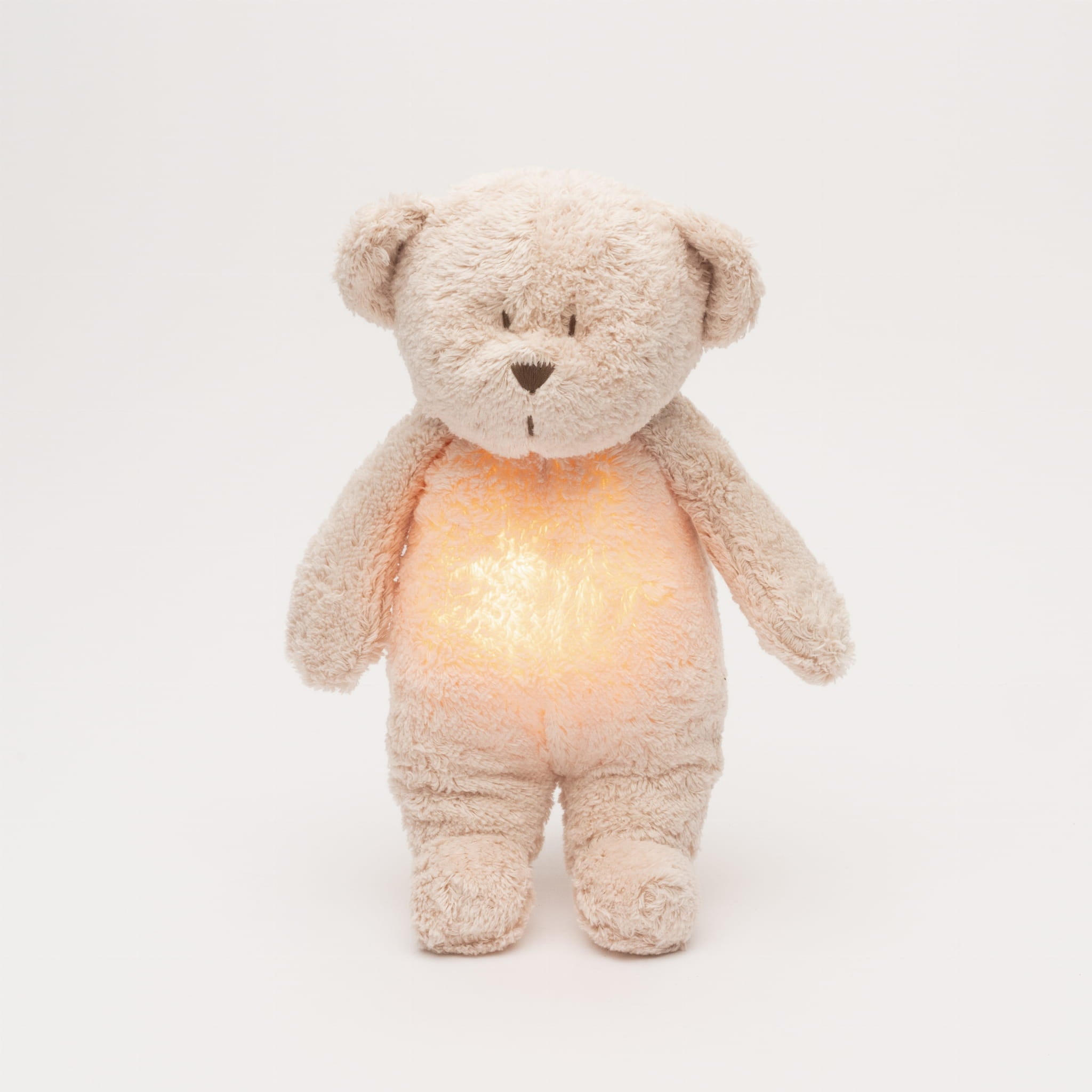 De knuffel is gemaakt uit heerlijk zacht organisch katoen en heeft 5 natuurlijke, kalmerende geluiden die een rustige slaap bevorderen. Daarnaast kan je kiezen uit 3 verschillende geruststellende melodietjes die uit de buik van de knuffelbeer komen.