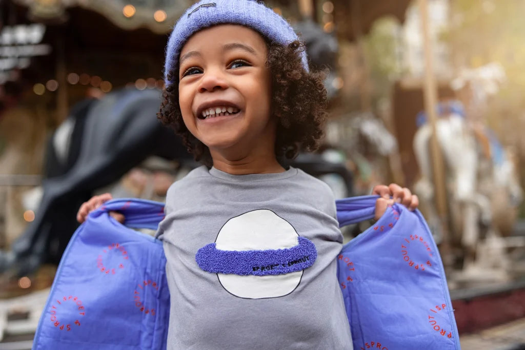 Dit grijze T-shirt van Sproet & Sprout is versierd met een stoere print van Saturnus op de voorkant, perfect voor kleine ruimtereizigers in de dop. Gemaakt van 100% biologisch katoen (ORG CO) biedt het shirt een zachte feel en comfortabele pasvorm. Een minimalistisch design met een kosmische twist, ideaal voor nieuwsgierige kids met een hoofd vol sterren.