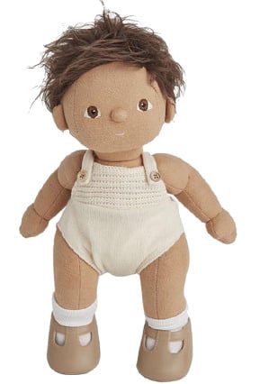 Dit is Sprout, uit de Dinkum Dolls serie van Olli Ella. Helemaal gemaakt op kindermaat om mee te knuffelen, aan te kleden en leuke kapsels te maken (zelfs 2 staartjes). De poppen hebben beweegbare armen, benen en hoofdje. Ze kunnen zitten en ook staan als ze hun schoenen aan hebben.De Dinkum Dolls zijn gemaakt van het zachtste katoen, ideaal om mee te spelen of mee in bed te nemen. Let vooral op de geborduurde details op hun gezichtje. Elke pop draagt een uniseks outfit, sokjes, luier en schoentjes.