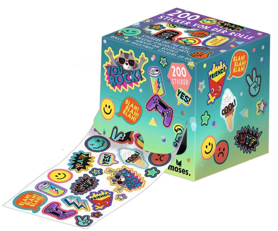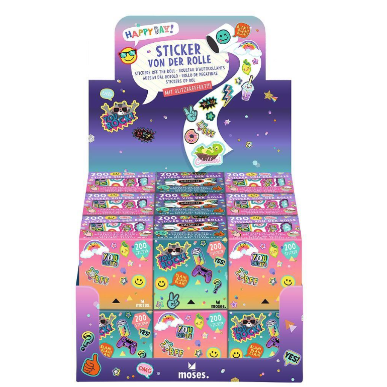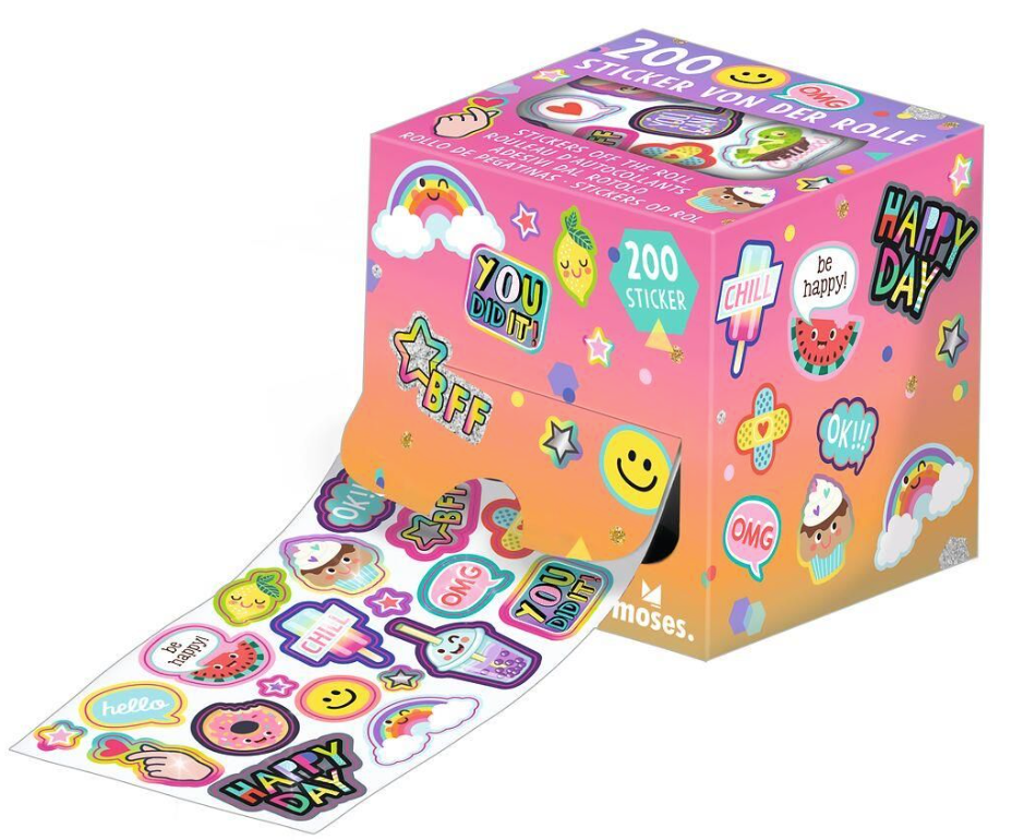 200 stickers met glittereffect, wordt geleverd op rol in geschenkbox. Coole stickers om je saaie boeken, telefoonhoes en of agenda mee te pimpen!