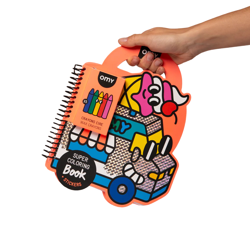 Een 35 pagina's tellend kleurboek in de vorm van een foodtruck. Een heerlijke wereld vol popcorn, gekke ijsjes en hotdogs...