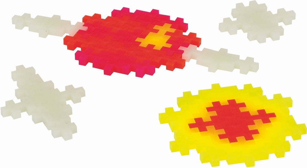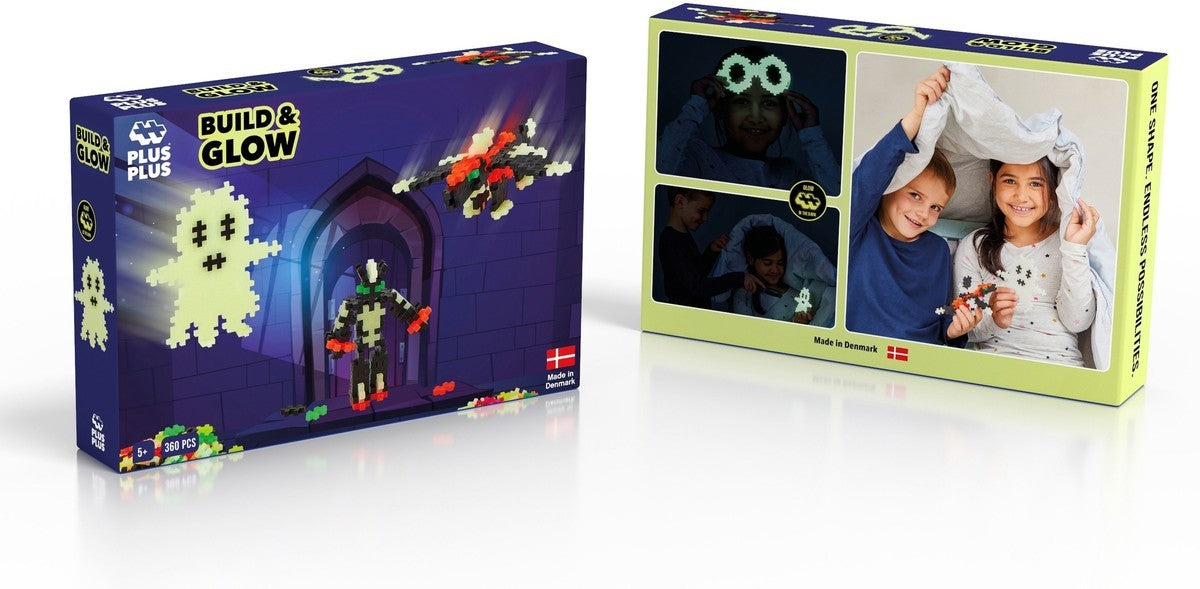 Met 360 bouwstenen, waaronder glow-in-the-dark elementen, kunnen kinderen sterren, manen, ruimtewezens, spoken of hun eigen fantasiefiguren bouwen – en ze laten oplichten in het donker! De eenvoudige vorm van Plus-Plus maakt het mogelijk om zowel 2D als 3D creaties te maken die keer op keer opnieuw opgebouwd kunnen worden.
