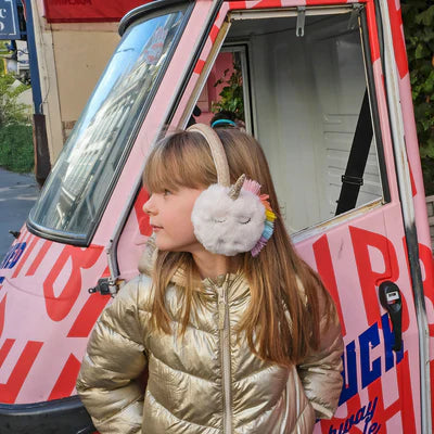Wij geloven in eenhoorns! Onze eenhoorn-oorwarmers zijn gemaakt van het zachtste witte nepbont en zijn voorzien van een felgekleurde manen met kwastjes! Met een schattig geborduurd gezichtje, een gouden glitterhoorn en een gouden glittercomfortband zijn ze de meest magische manier om die kleine oortjes deze winter warm te houden!