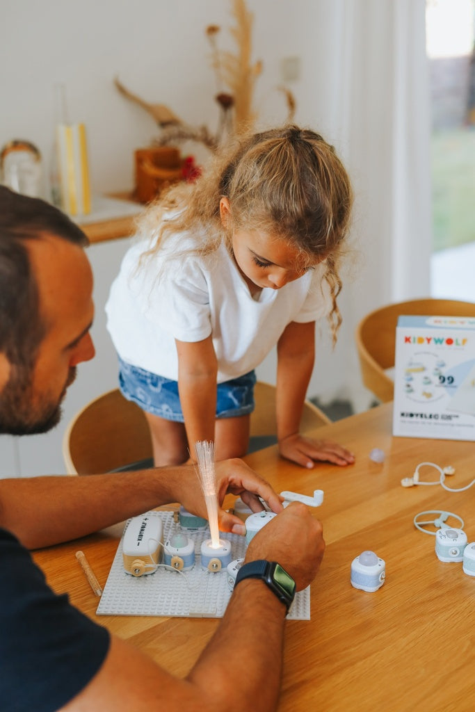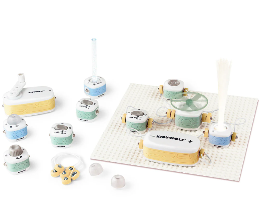De Kidywolf Kidyelec Starter Pack is een educatieve set waarmee kinderen vanaf 6 jaar spelenderwijs kunnen ontdekken hoe elektriciteit werkt. Met 10 gemakkelijk te monteren modules kunnen kinderen leren hoe elektrische stroom circuleert en eenvoudige schakelingen maken. Deze set stimuleert logisch denken en het begrip van basisprincipes van elektriciteit op een veilige en leuke manier. Dankzij de gebruiksvriendelijke onderdelen en duidelijke opzet is het ideaal voor jonge ontdekkers die hun eerste stappen willen zetten in de wereld van techniek en wetenschap.
