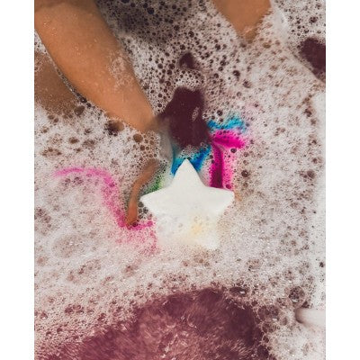 Laat badtijd tot leven komen met de Mini Ü – Bruisbal ster. Deze betoverende bruisbal verandert het bad in een magische onderwaterwereld vol kleur en bubbels.