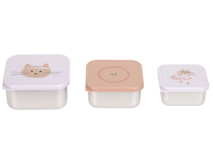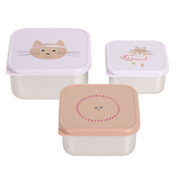 Sportief plezier met het Tiny Team! Sportieve dieren zoals honden en katten worden kleine metgezellen voor de allerkleinsten. De praktische LÄSSIG roestvrijstalen snackboxen in een set van 3 uit de Tiny Team-collectie zijn de ideale metgezellen voor school, de crèche of onderweg. Fruit, groenten of broodjes vinden hun plaats in de vrolijke snackboxen.