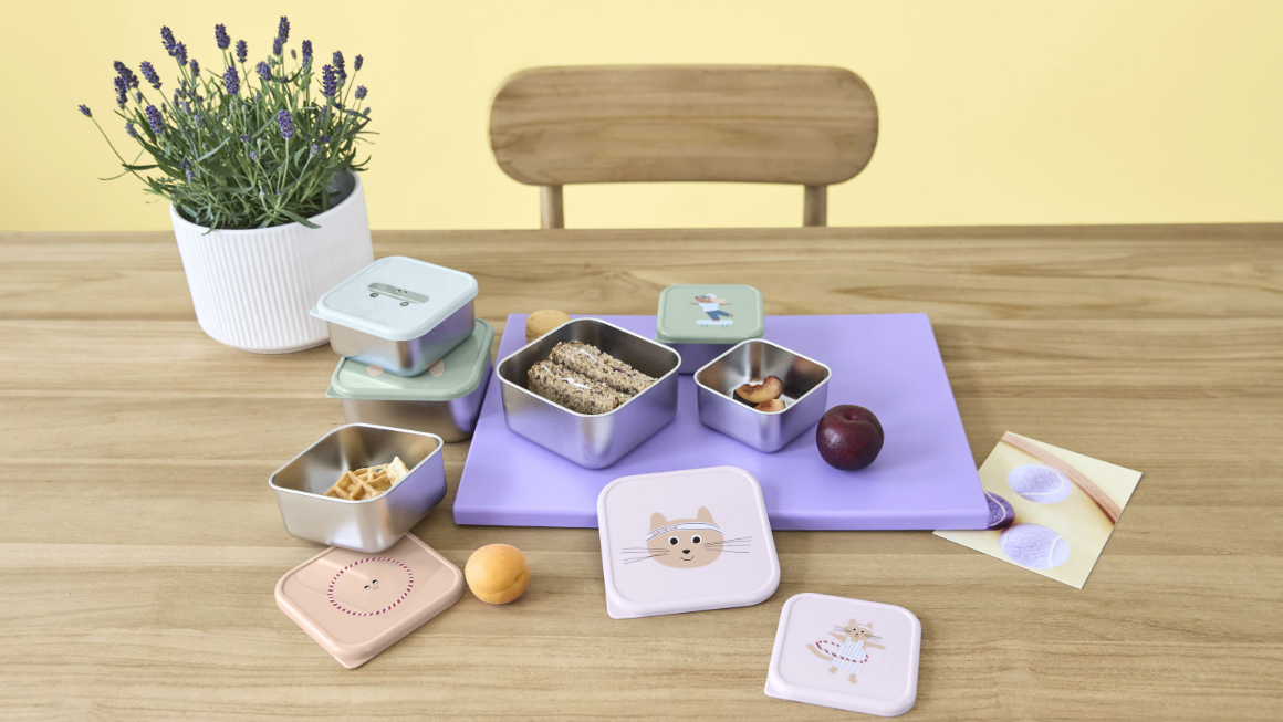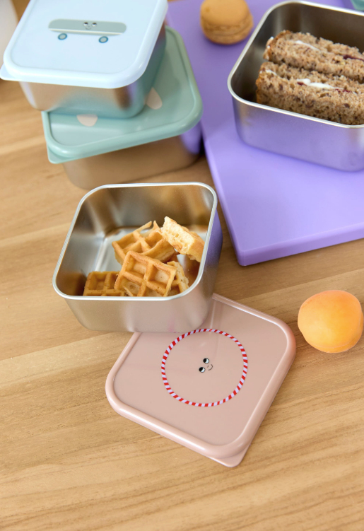 De roestvrijstalen snackboxen zijn de perfecte aanvulling op de vele andere producten uit de Tiny Team-collectie.