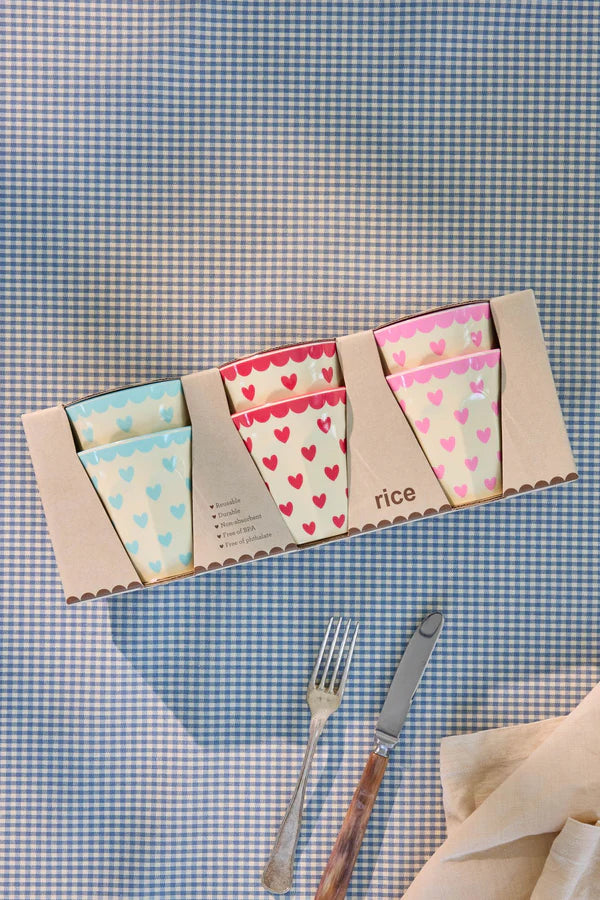 Een set met 6 van onze populaire middelgrote melamine bekers met leuke hartjesprint. Melamine is duurzaam en ideaal voor dagelijks gebruik, omdat het sterk en makkelijk schoon te maken is. De bekers hebben een inhoud van 250 ml en zijn super handig voor zowel kinderen als volwassenen! Let op: het product is niet geschikt voor de magnetron.