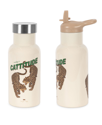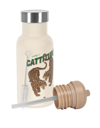 Inclusief twee verschillende deksel opties: een met een rietje en een gewone roestvrijstalen schroefdop. Perfect om mee te nemen naar de kleuterschool en school. Inhoud tot 350 ml.