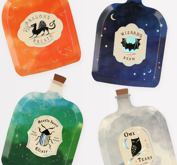 Creëer een magisch feest met onze speciale papieren borden. Ze zijn slim ontworpen om eruit te zien als toverdrankflesjes - borden waren nog nooit zo betoverend. Perfect voor tovenaars- en heksenfeestjes, Halloweenfeestjes of wanneer u een buitengewoon effect wilt toevoegen aan een feest.