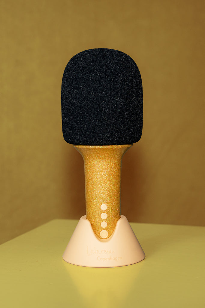 De LaLarma Microfoon Glitter Goud is microfoon en speaker in één. Met lichtjes die meebewegen op muziek.