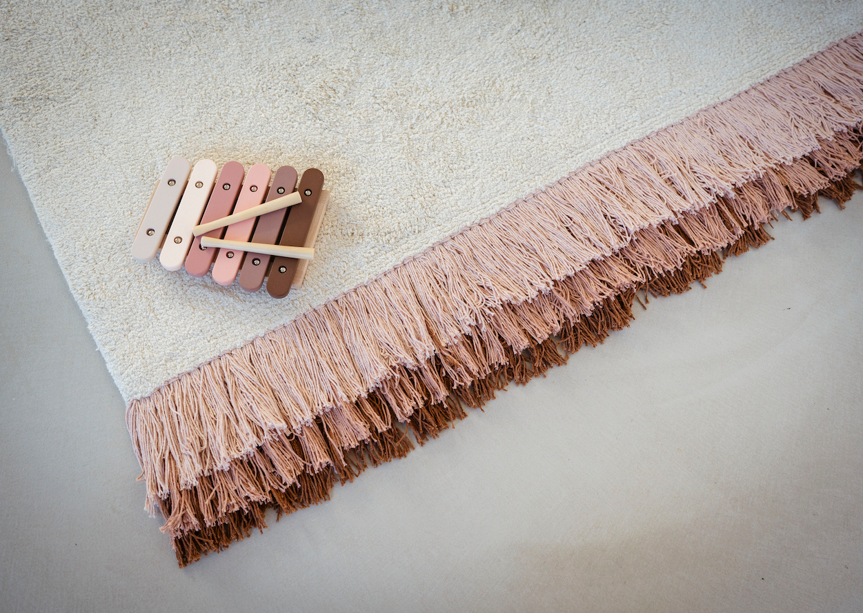 Het Tapis Petit Jules Natural vloerkleed is de ideale keuze voor een rustige en zachte basis in de meisjeskamer. Dit handgemaakte, rechthoekige vloerkleed is uitgevoerd in een warme cream kleur die perfect combineert met de warm gekleurde kwastenrand. Deze bijzondere gekleurde kwastenrand aan de korte zijden, geven het vloerkleed een uniek effect. De combinatie van de natuurlijke kleuren en de bijzondere kwasten geeft het vloerkleed een lieve en vrolijke uitstraling. Het Jules Natural vloerkleed is gemaakt van gerecycled katoen en is heerlijk zacht om op te spelen. Een duurzame en stijlvolle toevoeging voor een serene, gezellige sfeer in de kinderkamer.