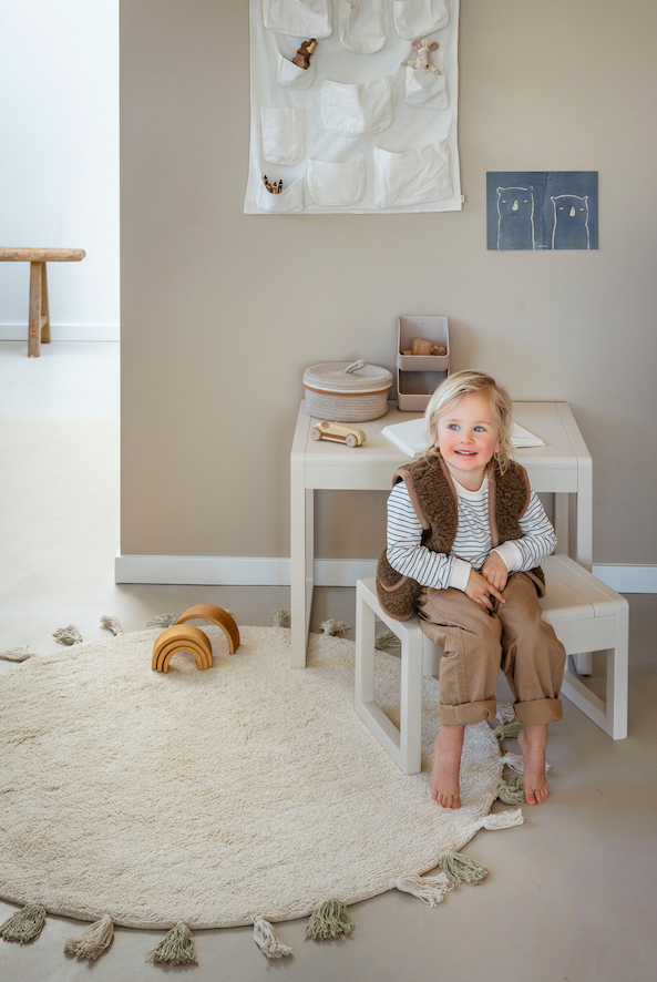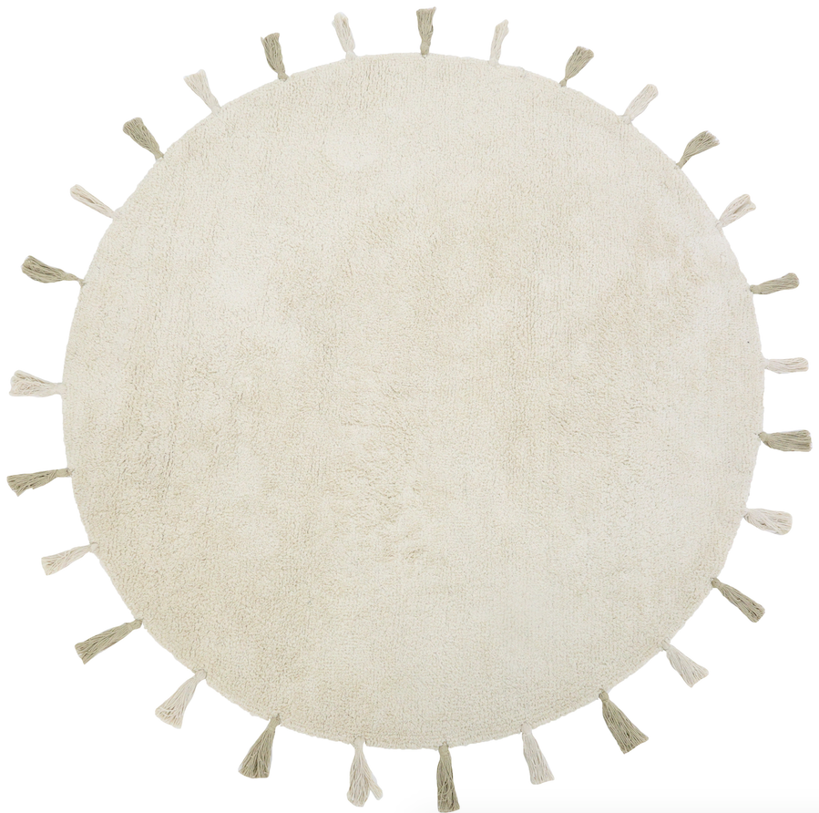 Breng direct sfeer en zachtheid in de kinderkamer met het vloerkleed Sara Natural. Dit handgemaakte, ronde vloerkleed van gerecycled katoen heeft een lichte, natuurlijke kleur die rust en warmte uitstraalt. De speelse kwastjes in lichtgroene tint geven het vloerkleed een frisse en vrolijke twist, perfect om een serene babykamer of stijlvolle speelhoek tot leven te brengen. Het Sara Natural vloerkleed voelt heerlijk zacht aan en is ideaal om op te spelen of te lezen. Met dit vloerkleed kies je voor een tijdloos design, duurzame materialen en een sfeervolle toevoeging aan elke kinderkamer.