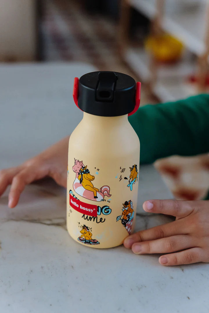 Houd drankjes op de perfecte temperatuur met de Hello Hossy waterfles voor kinderen. Deze isothermische fles houdt dranken tot 12 uur warm en 24 uur koud, en is uitgerust met een lekvrije dop, waardoor hij ideaal is voor in een droge rugzak of onderweg.