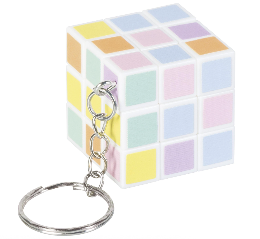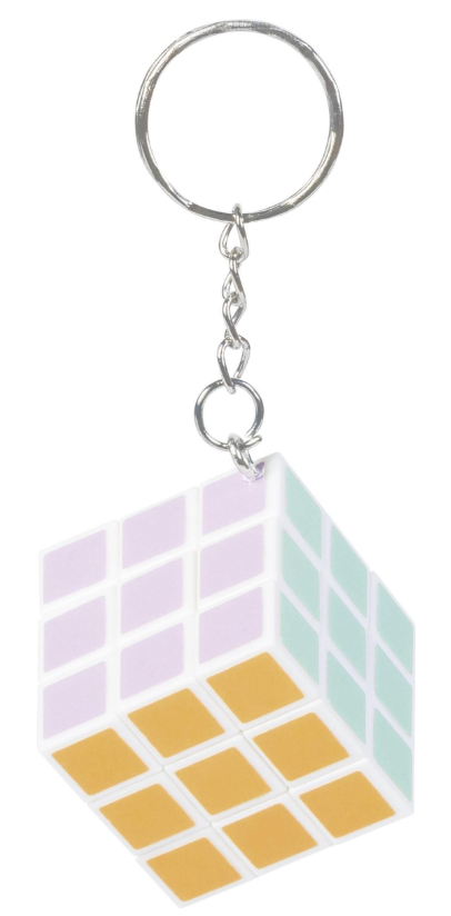 Deze geweldige kubus sleutelhanger is terug in pasteltinten. Ideaal leuk klein cadeautje en sleutelhanger ineen. Voorzien van metalen ring voor je sleutels.