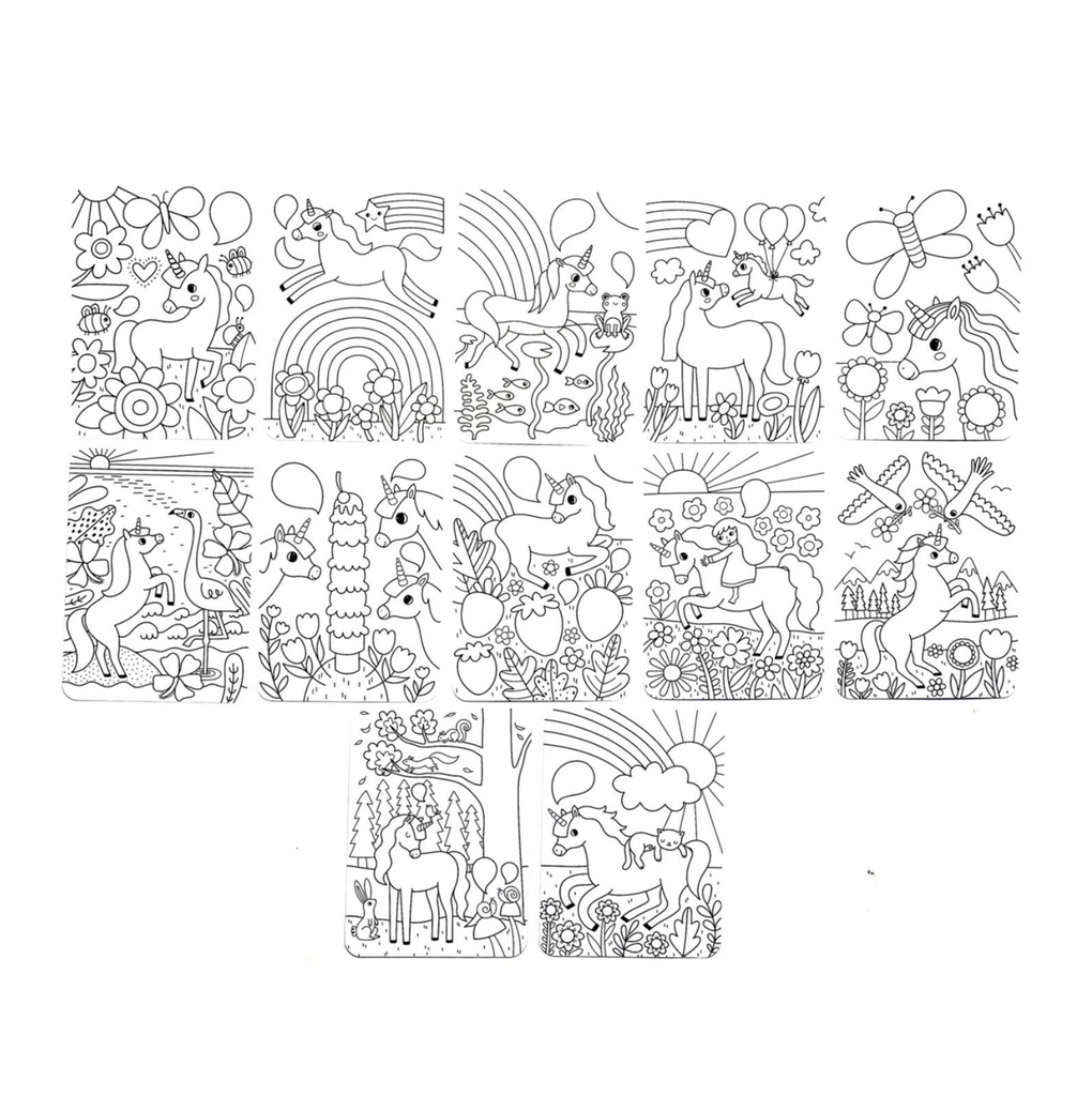 Sommigen zullen misschien zeggen dat dit magische kleurplaten zijn; anderen noemen het misschien een mysterie. Wij noemen het een superleuke kleuractiviteitenset met een geheim! Deze schattige eenhoornset is perfect voor kinderen die van kunst houden. Het lijkt misschien alsof hij gevuld is met gewone kleurkaarten, maar in werkelijkheid worden met elke streek van de stift van uw kind verborgen patronen onthuld! Dus terwijl je kleintje de afbeelding tot leven brengt, zullen ze patronen in het laken onthullen. Dit is een leuk cadeau voor elk kind, maar ook een geweldige reisactiviteit voor onderweg!