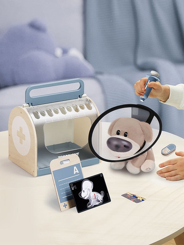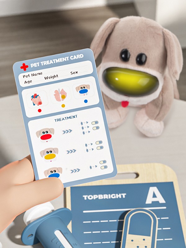 Met de DR.Dog dierenartsenset ontdekken kinderen vanaf 3 jaar op speelse wijze hoe ze een ziek dier kunnen verzorgen. Het pluche hondje reageert op onderzoek en behandeling met licht- en geluidseffecten en vertoont realistische symptomen, zoals een verkleurende neus bij koorts of verkoudheid. Met de meegeleverde accessoires – waaronder een stethoscoop, spuit, thermometer en diagnosekaart – ervaren kinderen hoe het is om in een echte dierenkliniek te werken. Zo leren ze spelenderwijs meer over zorg, gezondheid en empathie.
