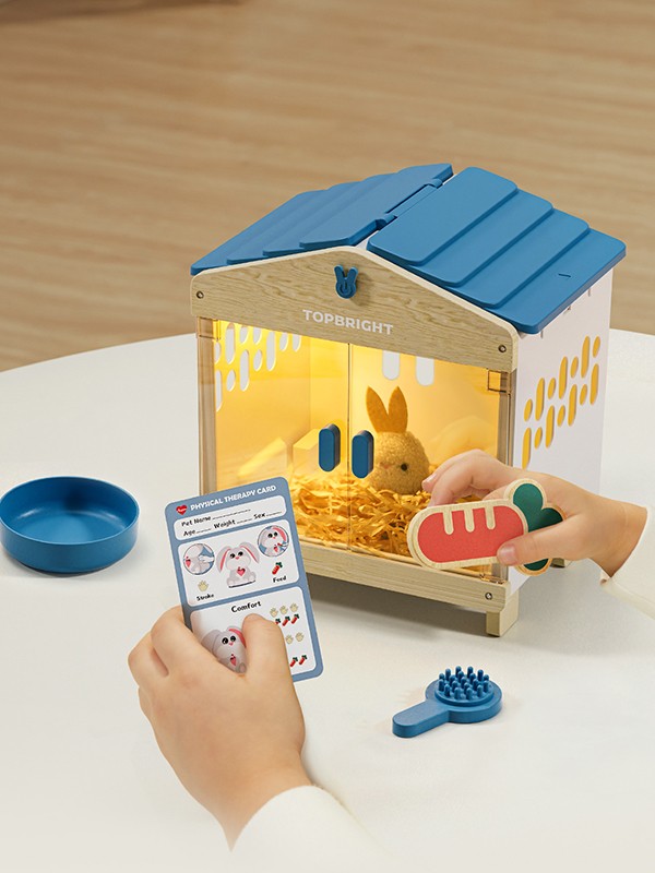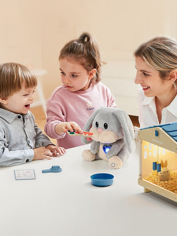 Mummy Bunny maakt zachte geluidjes en licht op tijdens het verzorgen, wat het spel nog levendiger maakt.